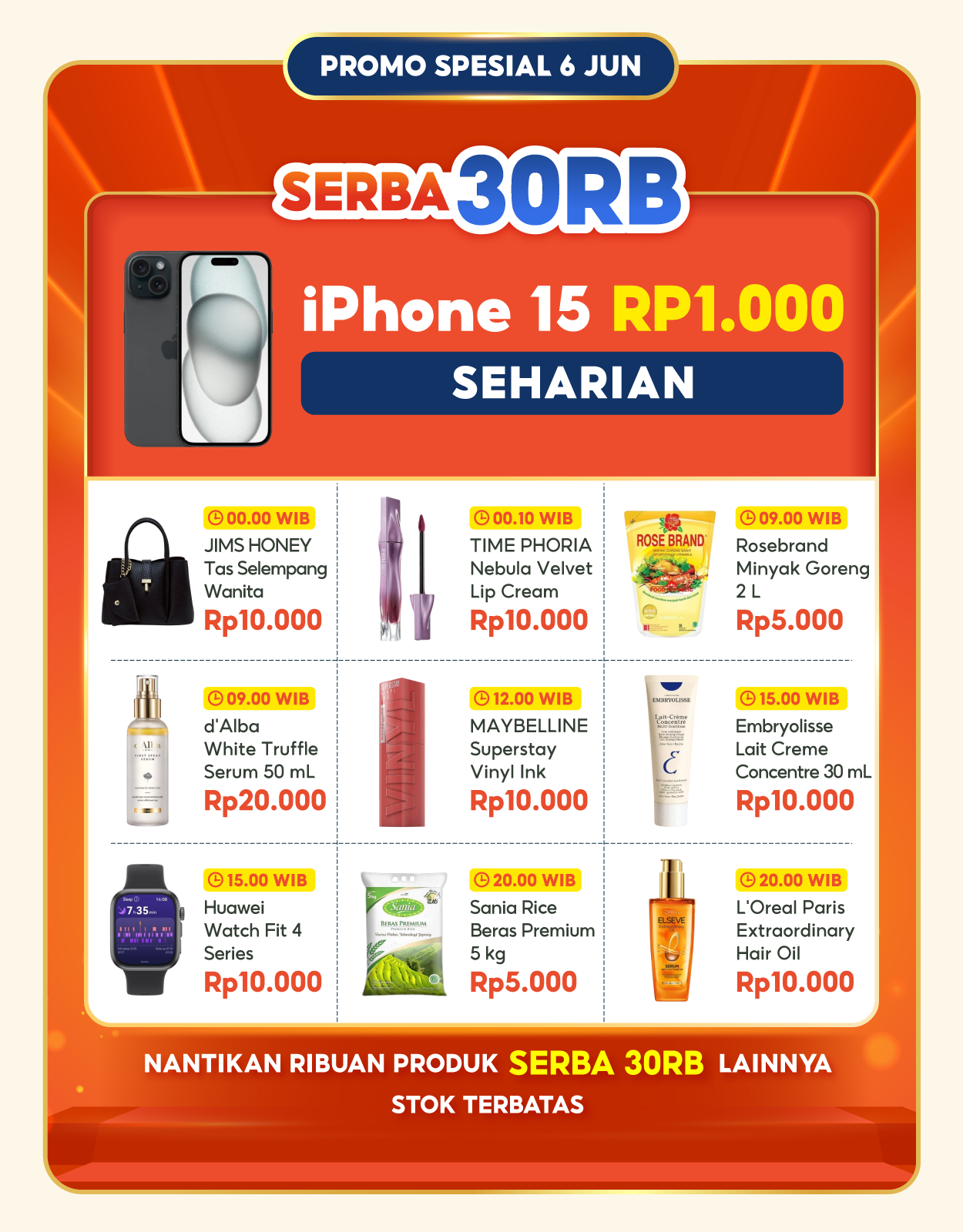 [PUNCAK 6.6] iPhone 15 Rp1.000 Seharian + Pasti Diskon 99% Buatmu